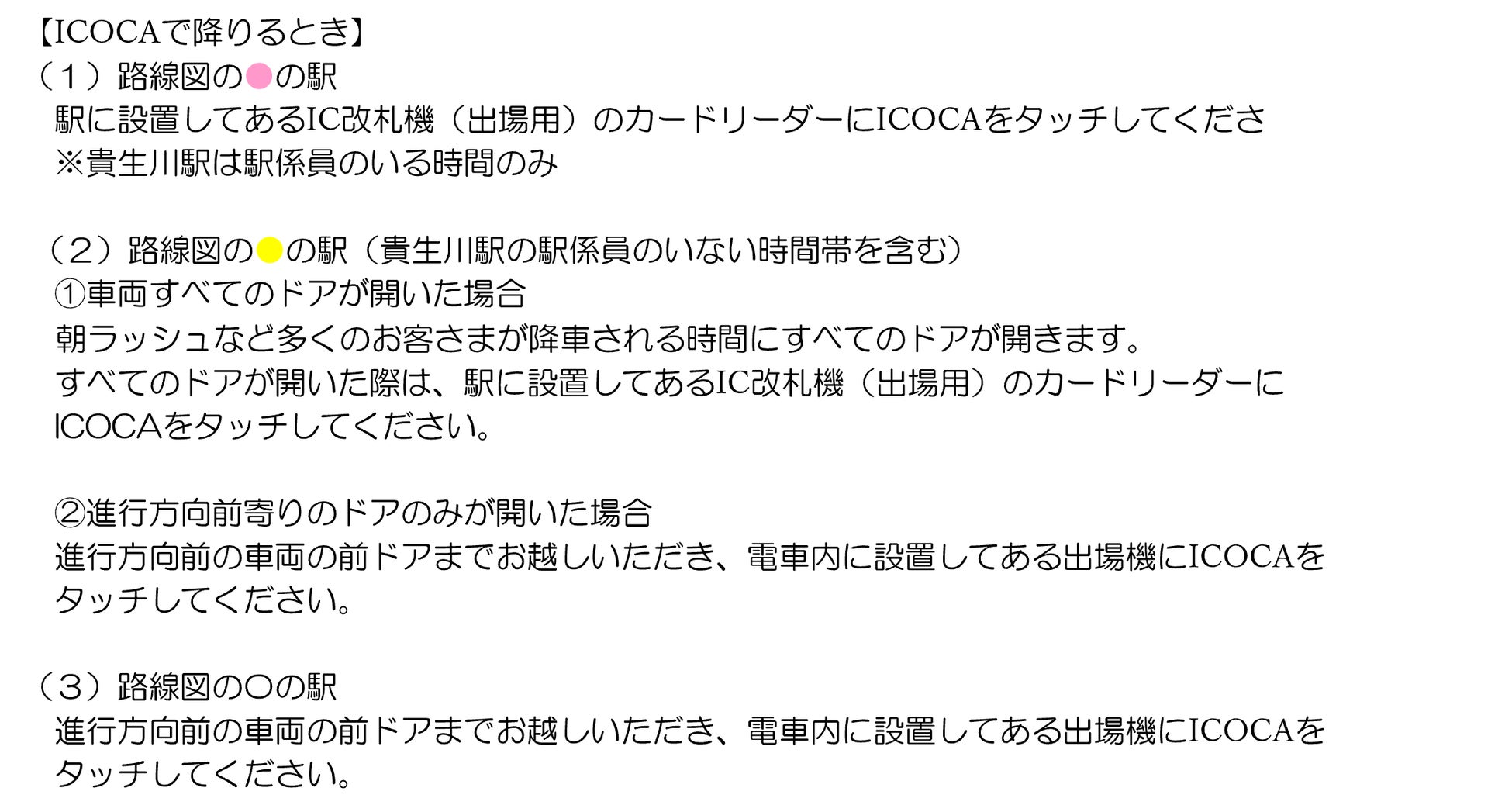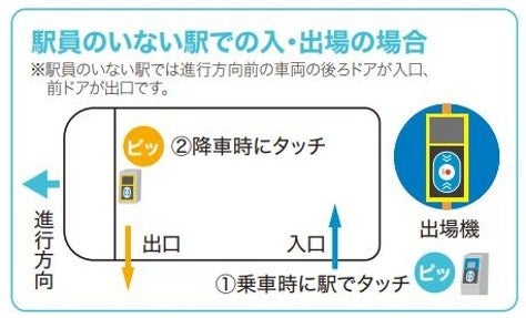 なお、駅係員のいない駅でお降りの場合は、お手数ですが進行方向前の車両にお越しいただき乗務員に提示してください。