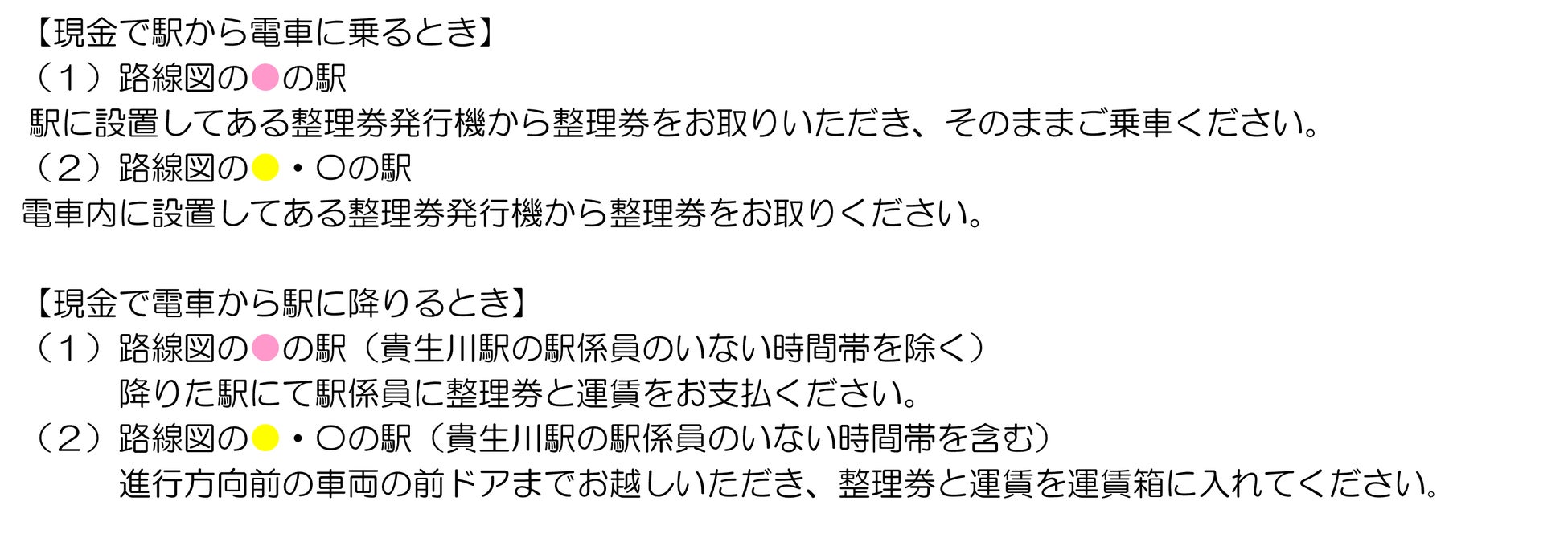 なお、駅係員のいない駅でお降りの場合は、お手数ですが進行方向前の車両にある運賃箱に回数券を乗務員に見えるように入れてください。
