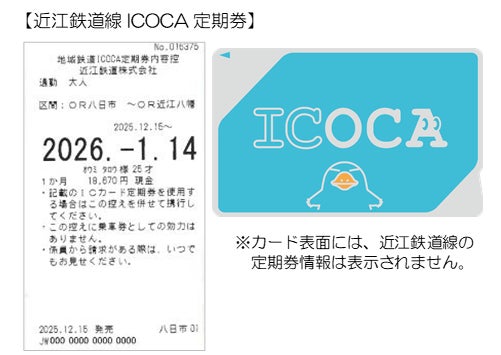 ・JR西日本などの鉄道の定期券と近江鉄道線の定期券が、1枚のICOCAやモバイルICOCAで利用できます。