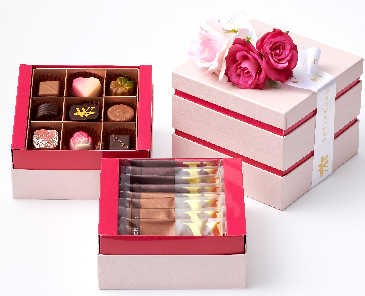 華やかなショコラと大人気のマカダミア・ショコラを2段のお重に詰め合わせた母の日限定のギフトボックス