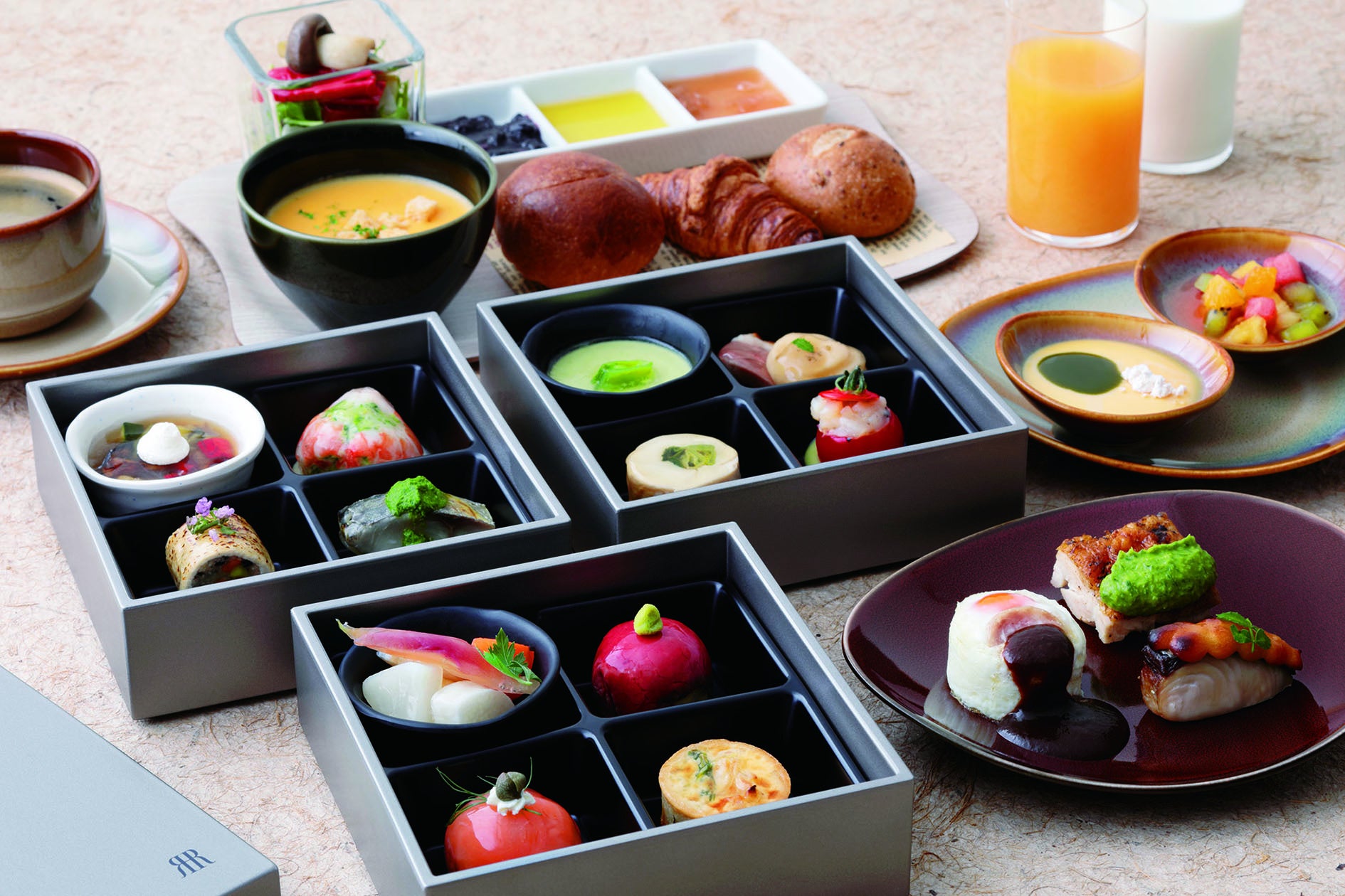 また、朝食は京の四季がコンセプトの三段お重朝食と、ビュッフェをどちらもお楽しみいただけます。