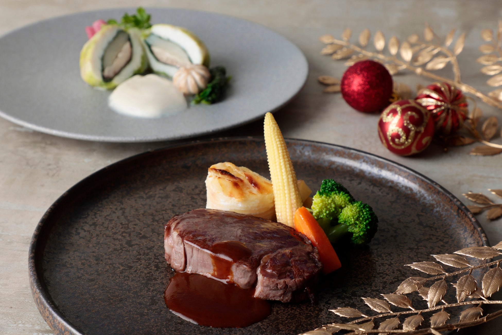 「国産牛フィレ肉のステーキ」メイン料理が異なる2種類のコースを用意しております。