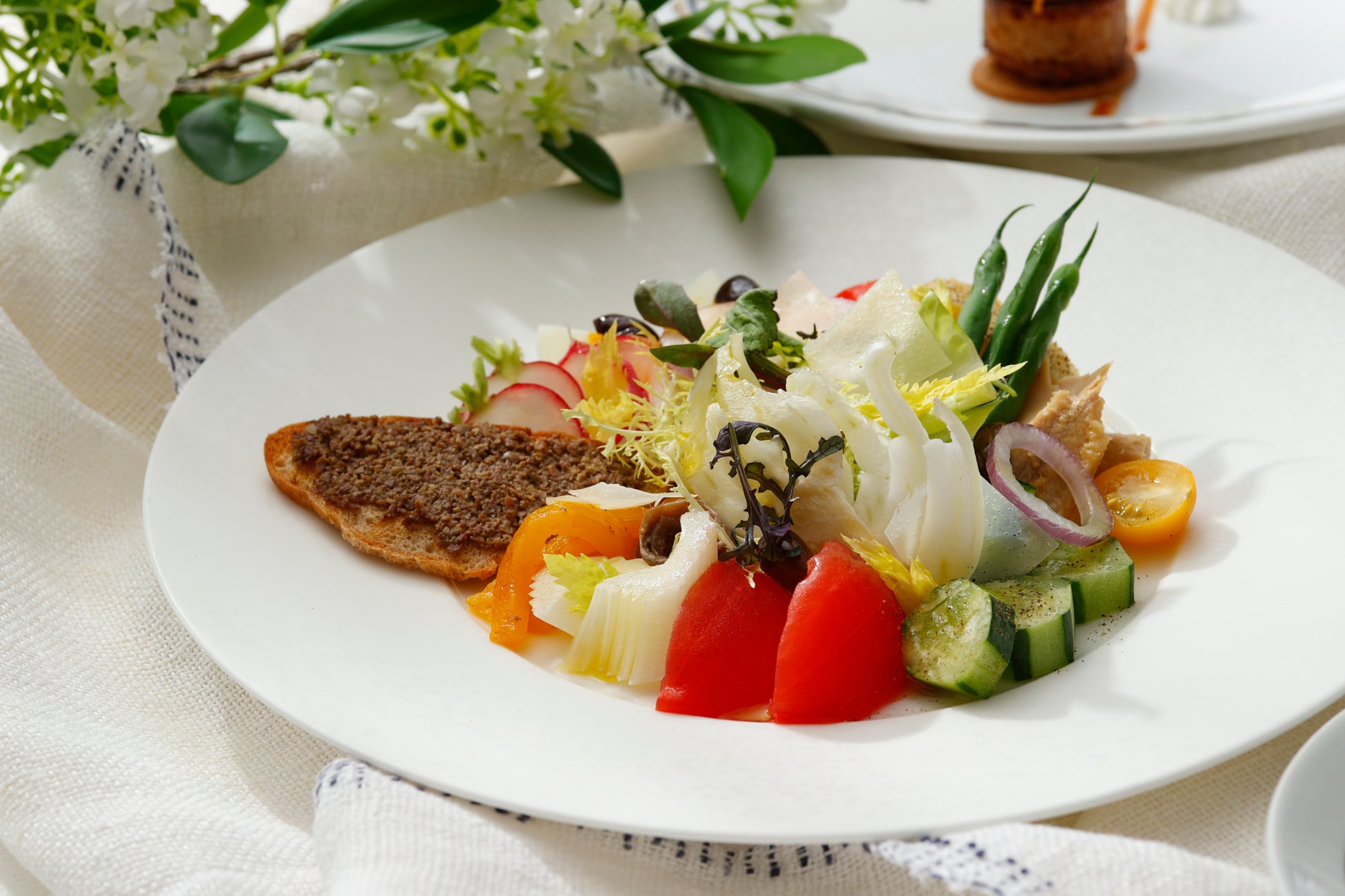 2025年6月2日(月)~7月31日(木)までの第一弾は「プロヴァンスの初夏」をテーマに、地中海の豊かな恵みを生かした素材を使用した、ロゼワインとのマリアージュをお楽しみいただけるシンプルながらも味わい深いメニューの数々をご用意しました。プロヴァンス地方はロゼワインの一大産地で知られており、初夏から夏にかけて新鮮な野菜やオリーブオイル、ハーブを使用した料理にロゼワインを合わせて食事を楽しむ習慣があり、その魅力を存分にご堪能いただけるコース料理です。プロヴァンスの初夏の魅力をたっぷり詰め込んだ美食メニューを横浜港の澄み渡る景色とともに味わう、船旅気分で過ごすフランスの美食巡りをごゆっくりとお楽しみください。