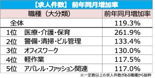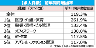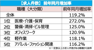 【図3】<全国>前年同月求人件数の増加率が高い職種TOP5