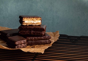 ショコラでミルククリームサンドをまるごと包みこんだ冬限定商品。リッチな炭火焙煎でカカオ豆のコクと香りを存分に引き出した“炭火ショコラ”がおいしさの秘密。コクたっぷりのショコラに芳醇バターとミルキーなクリームが一気にとけあう至福のおいしさです。