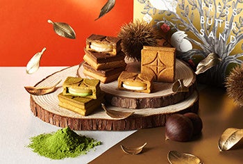 2023年の干支「卯」をイメージしたボックスの限定商品。マロングラッセを加えてより濃厚な風味になった「バターサンド〈栗〉」と、コク深いバターに宇治抹茶の苦味と香りが引き立つ「バターサンド〈宇治抹茶〉」に定番の3種を詰め合わせた、手土産にもぴったりの一品です。