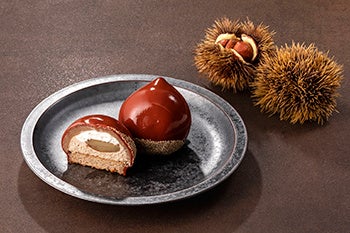 ビジュアルも中身も栗そのもの!マロン生地の上に、くちどけの良いマロンクリームとマロンバタークリーム、ホイップクリームを重ね、中には渋皮栗を忍ばせています。さらに栗のグラサージュでコーティング。5つの栗の味わいもたっぷりと感じられる見た目もキュートなスイーツです。