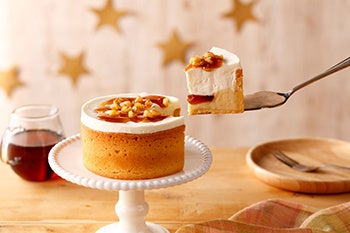 カスタードクリーム、ビターなメープルソース、さらに北海道産生クリームを使用したチーズクリームからなる3層仕立てのタルト。仕上げにメープルソースをかけてくるみをちりばめて華やかに。中からあふれるソースが絶品の、ザ・メープルマニアならではの新商品です。