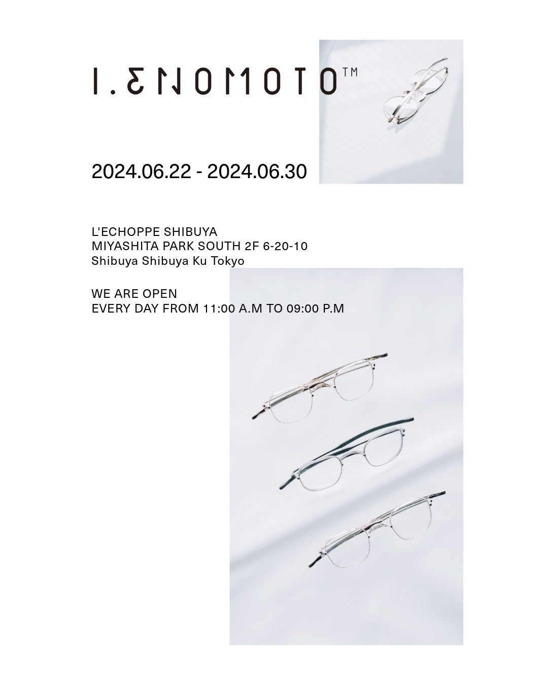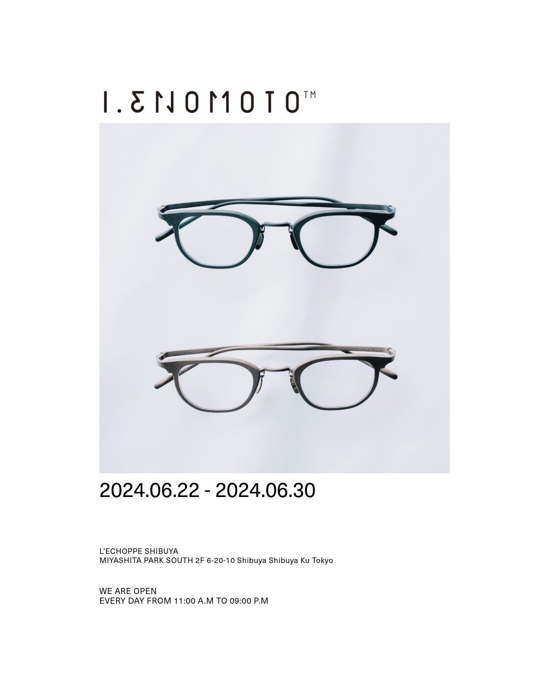眼鏡の分野において最高峰のスキルと知識を持つデザイナー・榎本郁也のシグネチャーブランド、I.ENOMOTO(アイ.エノモト)のポップアップショップが、6月22日(土)より、L’ÉCHOPPE渋谷店にてスタートする。