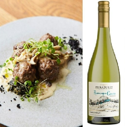 西宮の苦楽園に精肉店、大阪梅田に肉料理専門店を持つお店が初登場。クセが少なくジューシーなミートボールにマイルドなクリームソースを添えて。ほんのり感じる樽のニュアンスが、 コクのあるクリームソースと好相性の白ワインとどうぞ。