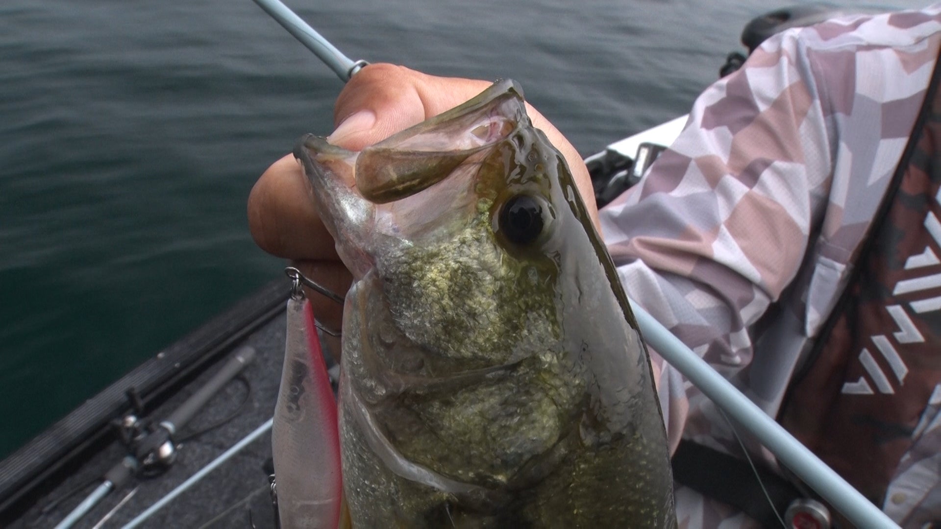 ソフトワームが禁止の芦ノ湖。ハードルアーとフロッグを駆使し、納得の一尾を狙う。