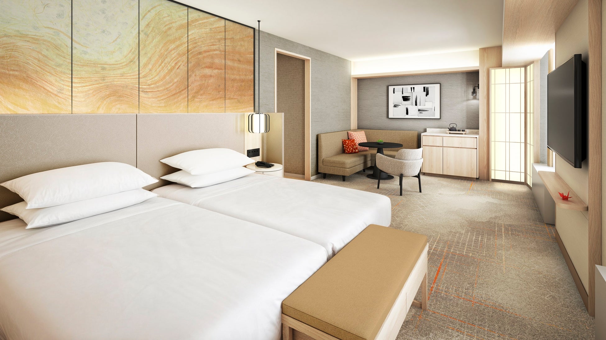 「Urban Refinement」をコンセプトにリノベーション中の17階 客室フロアは、2025年4月「エグゼクティブフロア」としてオープンします。今回のリノベーションとホテル開業40周年を記念し、正規料金より40%割引でご用意するプランを販売します。