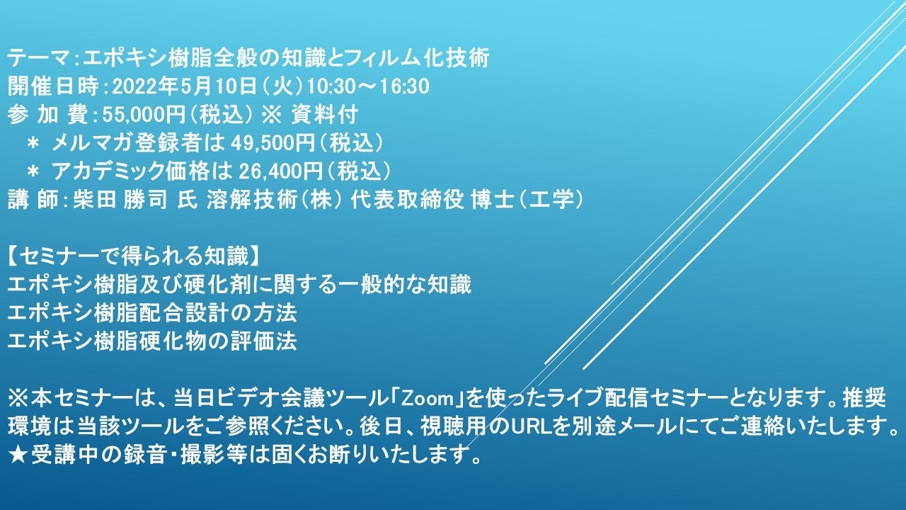 【ライブ配信セミナー】エポキシ樹脂全般の知識とフィルム化技術 5月10日(火)開催 主催:(株)シーエムシー・リサーチ