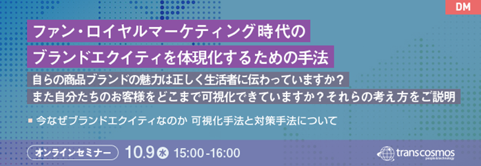 【トランスコスモスオンラインセミナー】ファン・ロイヤルマーケティング時代のブランドエクイティを体現化するための手法を10/9(水)に開催