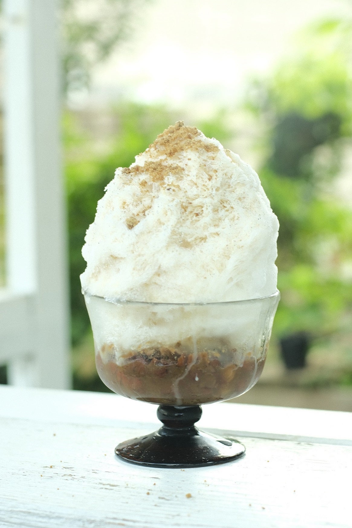 港川の街で人気のベーカリー「ippe coppe(イッペ コッペ)」。その一角に夏の間だけ現れる氷菓子のお店が「喫茶ニワトリ」です。黒糖でじっくり煮込んだ金時豆の上に、きめ細やかな氷をのせ、バニラビーンズの香り豊かな自家製ミルクをたっぷりと。豆とミルクを 混ぜながら、やさしい甘さを堪能して!
