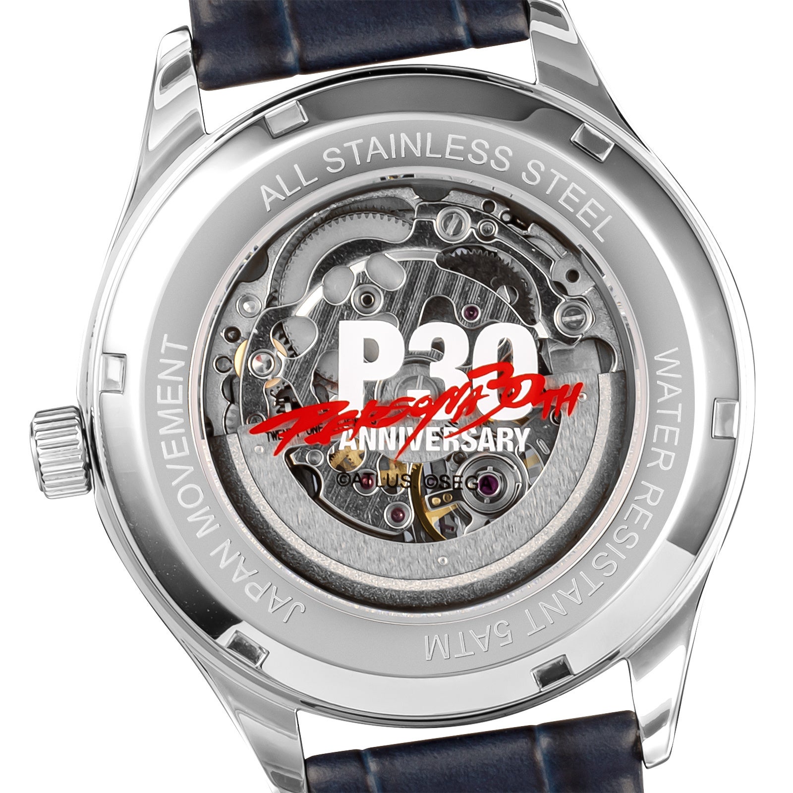 『ペルソナ』シリーズ30周年ロゴをレイアウトしたシースルーバック仕様の裏蓋からは内部の機械の駆動を眺めることができます。