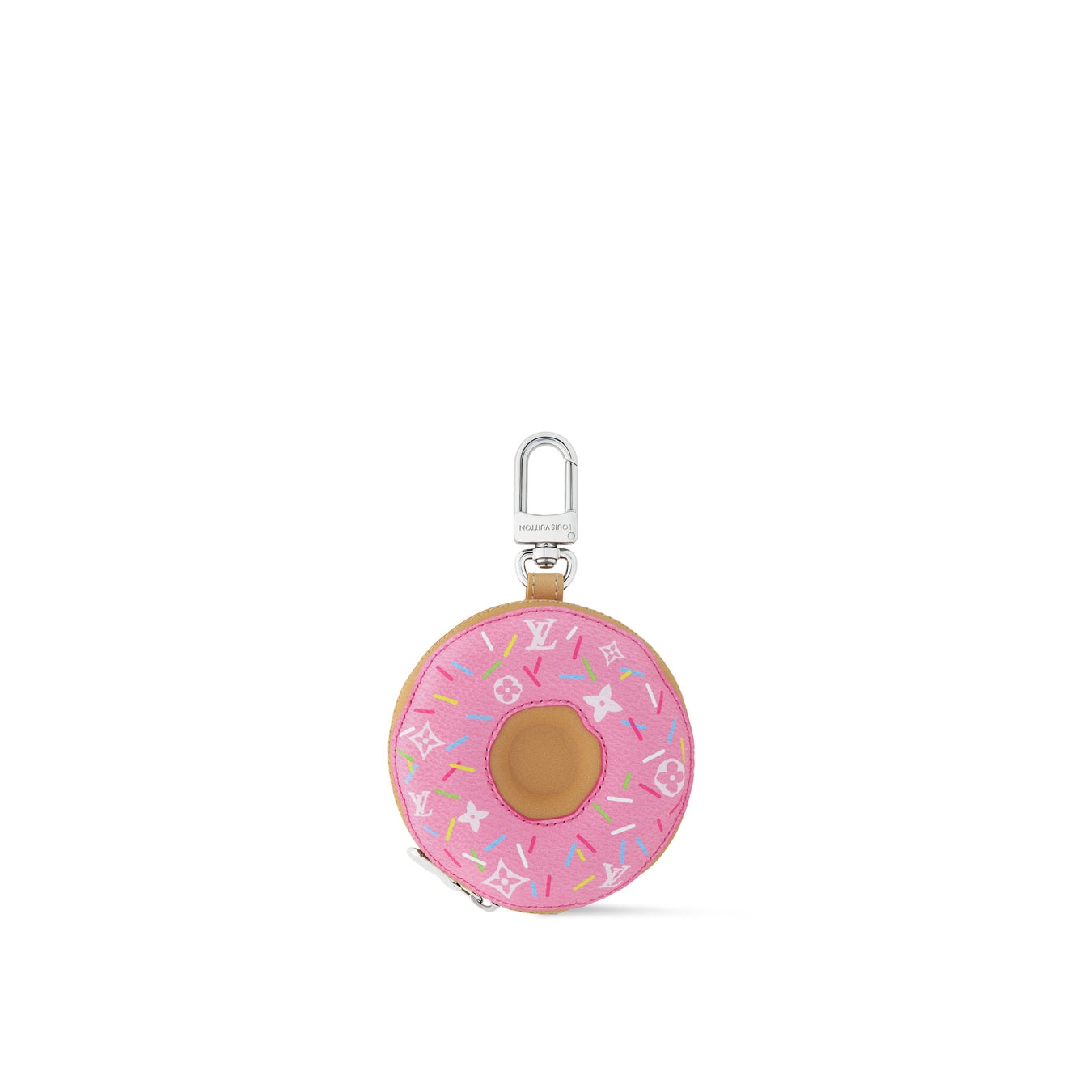 「バッグチャーム·LV ドーナッツ」は、レザーで仕上げ、ピンクのアイシングとマルチカラーのスプリンクルを模したモノグラム·キャンバスでカバーしています。ファスナーを開けるとワイヤレスイヤホンのケース収納に最適なポーチが現れる、プレイフルで実用的なアイテムです。