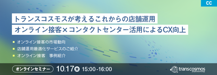 【トランスコスモスオンラインセミナー】トランスコスモスが考えるこれからの店舗運用~オンライン接客×コンタクトセンター活用によるCX向上~を10/17(木)に開催