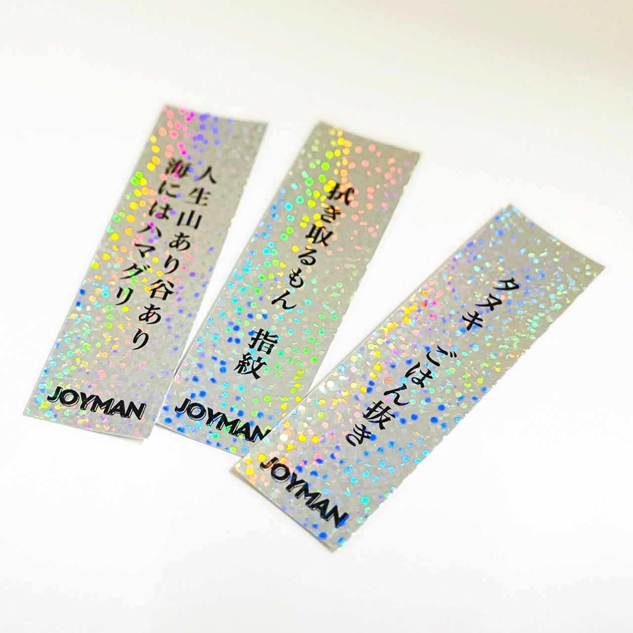 ジョイマン二人の手書きリリック4種類がプリントされたラメステッカー3枚セット。