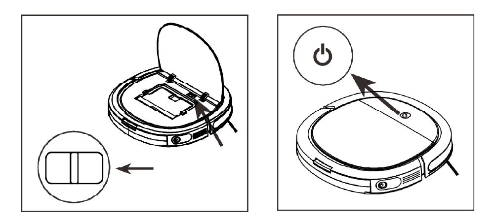 右の画像: ボタンを1回押すと、ロボットが自動クリーニングを開始します。