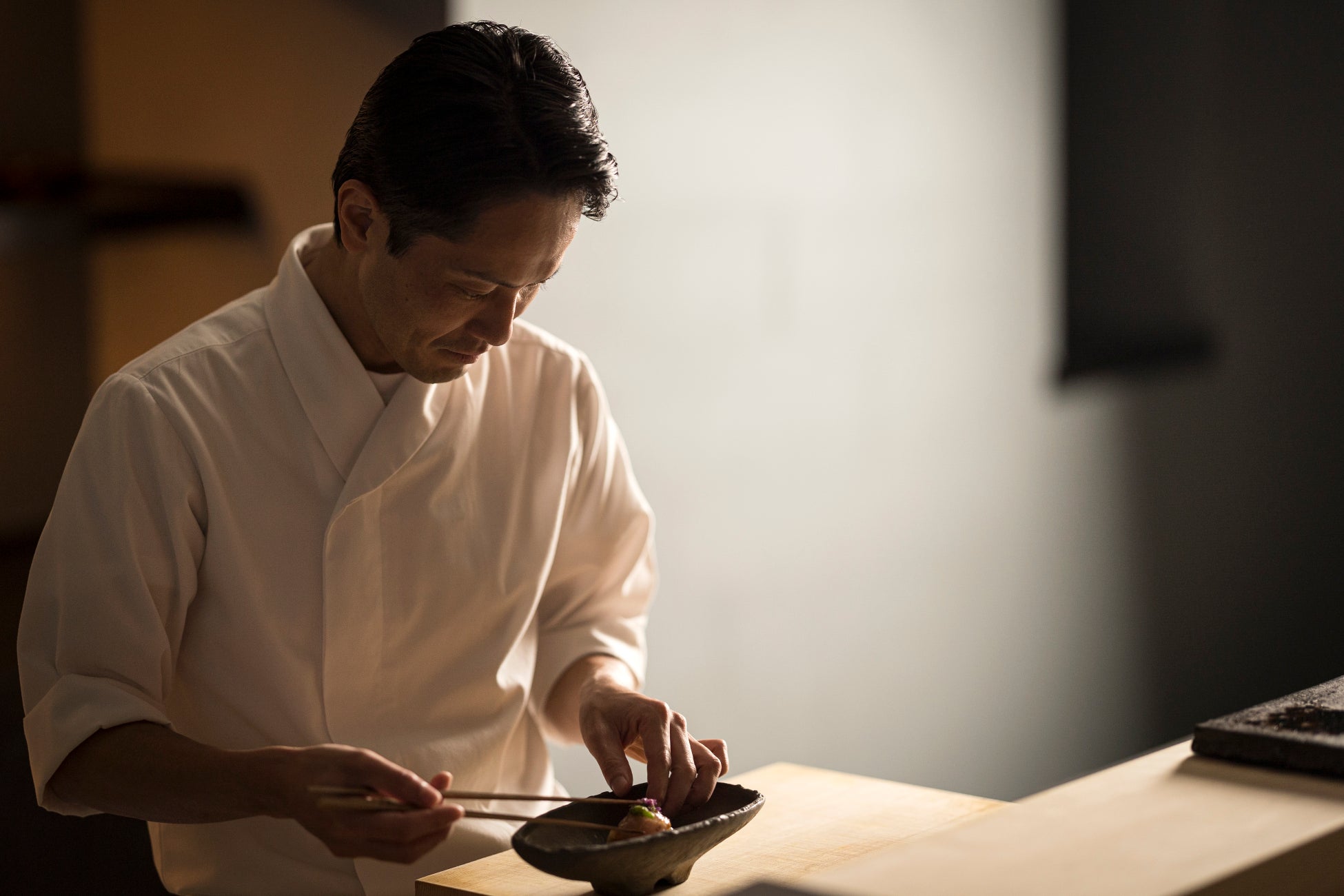 1985年生まれ、和歌山県出身。学生時代より和食の世界に魅了され、卒業後は、料理旅館「貴船 右源太(京都)」や「東山 Touzan(ハイアットリージェンシー京都)」にて研鑽を積む。長年日本料理の道を追求し培った繊細な技術と感性は、酒肴の構成に独創的なエッセンスを加えている。2025年に星のや東京「鮨 大手門」の料理長に就任。江戸前鮨の伝統を基軸としながら、自身の類稀な発想を融合させ、東京という地の利を活かした日本旅館ならではの新しい食体験を目指す。