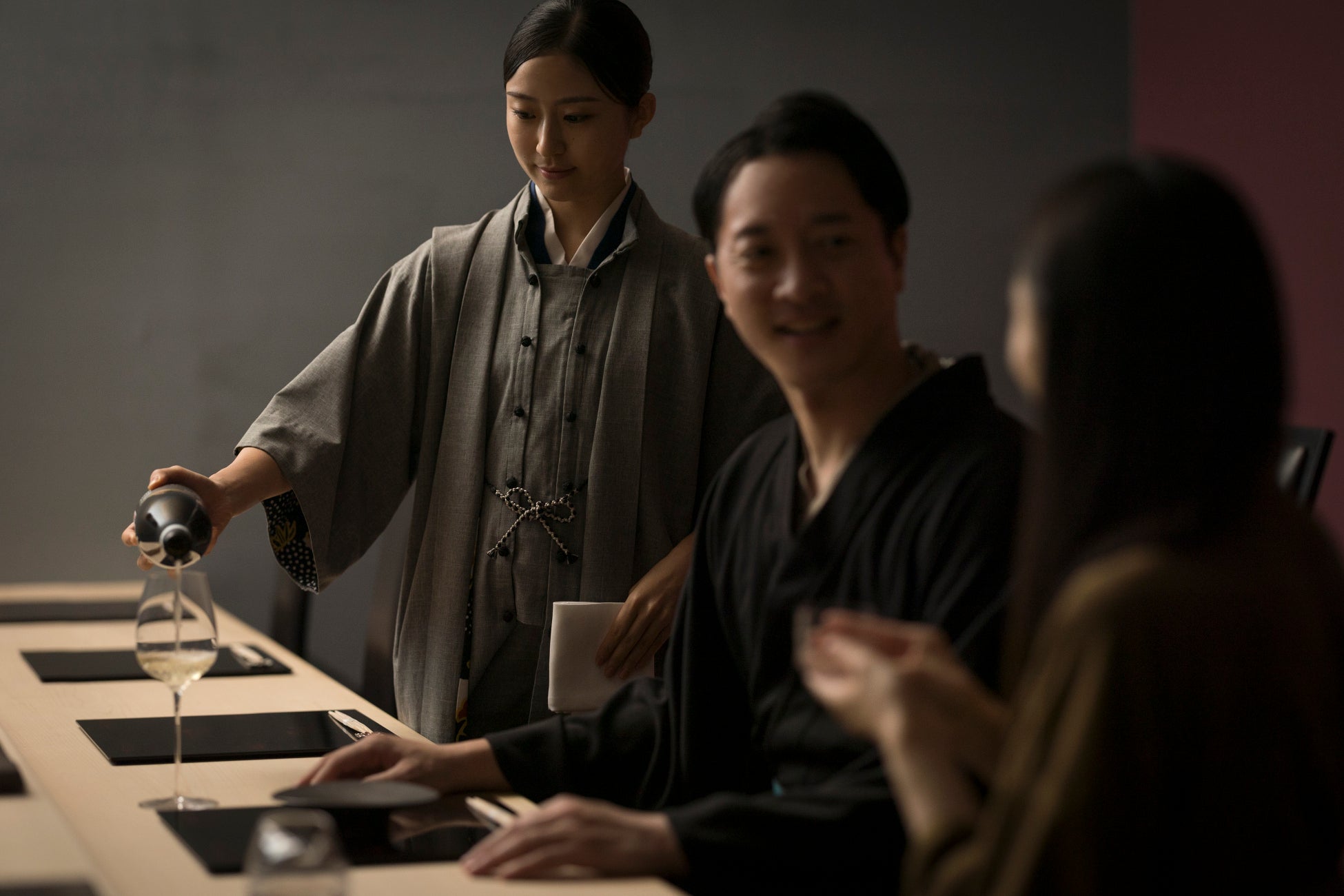旬の食材で仕立てるコースの味わいを最大限に引き立てるため、スタッフが厳選した個性豊かな日本生まれの酒とワインのペアリングを提案します。日本酒、ワイン、焼酎など、料理とのマリアージュを追求したセレクトと、日本旅館ならではの細やかな心遣いのもてなしを堪能できます。