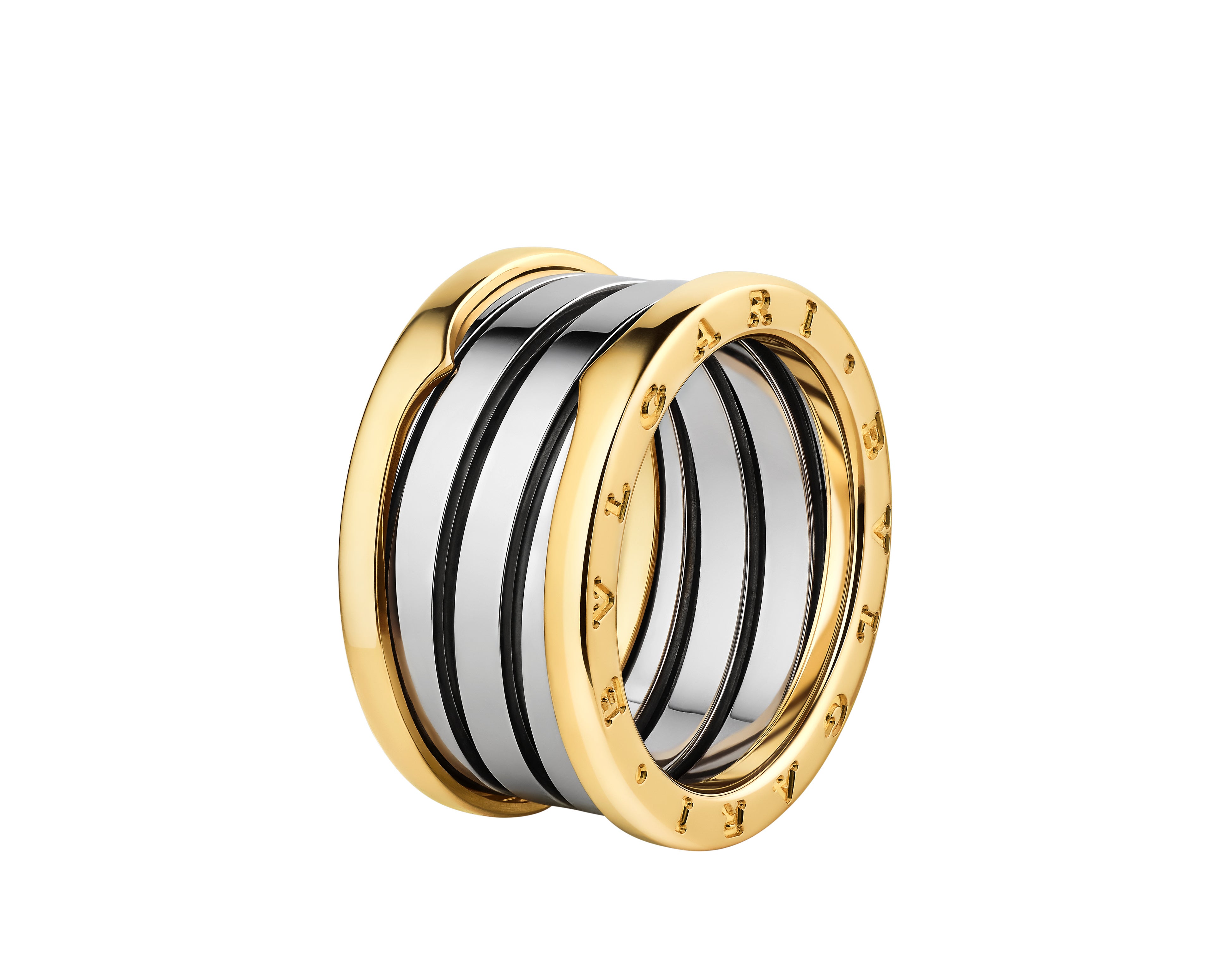 ビー・ゼロワン コレクションでは、イエローゴールドの縁取りが施されたステンレススティール製の2連と4連の2種類のリングを発表します。ビー・ゼロワン リングのコンパクトな空間は再び実験の場となり、象徴的なスパイラルはコントラストを通じてその独自性を表現し、彫刻的なフォルムの中に永続的な動きという概念を捉えています。ゴールドは温かさと明確さをもたらし、スティールは古代ローマの円柱のリズムからインスピレーションを得て、デザインの建築的な力強さを強化します。日常使いのためにデザインされた新しいリングは、ステンレススティールの軽さを際立たせるスリムで流線型のフォルムが特徴です。快適な着け心地で、単独でも重ね付けでも楽しめ、独自のビー・ゼロワンの世界にシームレスに溶け込みます。無限の組み合わせから、自分らしいスタイリングを心ゆくまでお楽しみいただけます。1999年に既成概念に挑むために誕生したビー・ゼロワンは、常に進化しながらも、その紛れもない真の姿を保ち続けています。