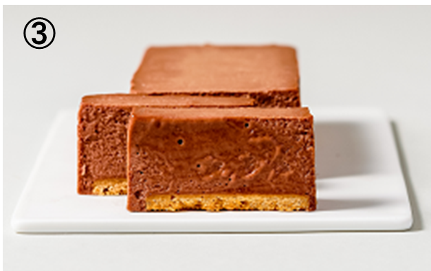 ③クリームチーズのまろやかな酸味に寄り添うように、フルーティーな印象を持つカカオを使用したレアチーズケーキです。