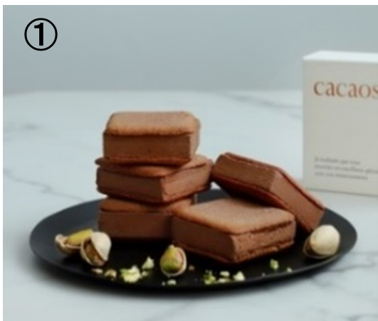 〈cacaosic〉①cacaosic pistachio(4個セット) 1,576円、(6個セット) 2,365円、(8個セット) 3,153円、②生チョコレート ミルク(9粒) 2,197円/地階 MAP③