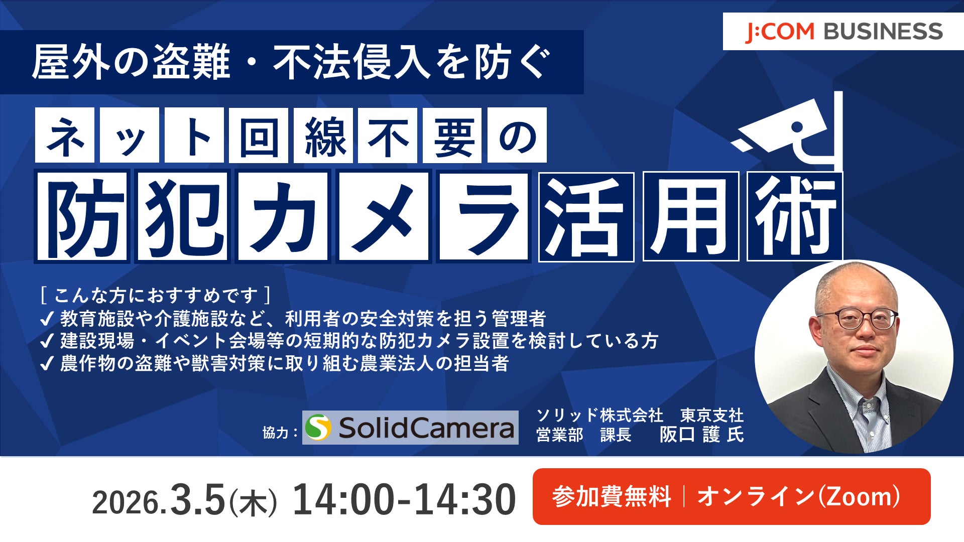 【3月5日開催】屋外の盗難・不法侵入を防ぐ ネット回線不要の防犯カメラ活用術
