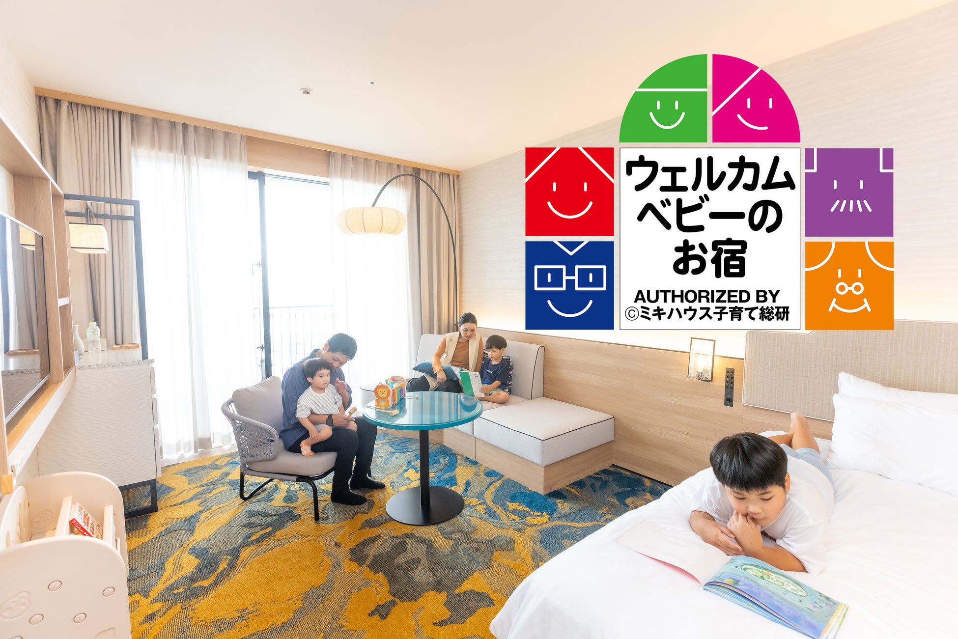 この度の認定を記念して、赤ちゃん・お子さま連れのご家族に安心してご利用いただける「ウェルカムベビールーム」とその客室に宿泊する「スマイルファミリープラン」をご用意いたしました。空港から車で約30分、徒歩圏内に大型ショッピングセンターやビーチがあり充実したリゾートステイを満喫できる当ホテルで、初めての沖縄旅行をお楽しみください。