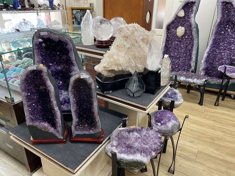 美しい紫色を湛えたアメシストカペーラは、家やオフィスに置くだけで風水的にも良いとされる天然石。「見た目の美しさ」と「日常に取り入れられる癒し」の両方を楽しめるミネラル素材として人気です。社名:ヘルムス貿易(株)