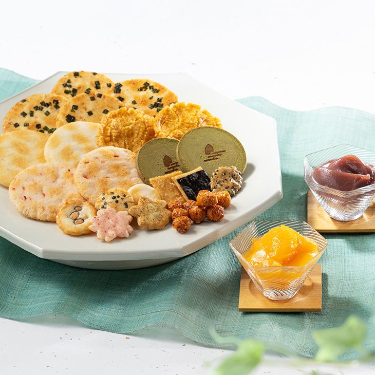 人気の米菓を中心に限定の抹茶たまごせんべいや、涼菓をあわせました。