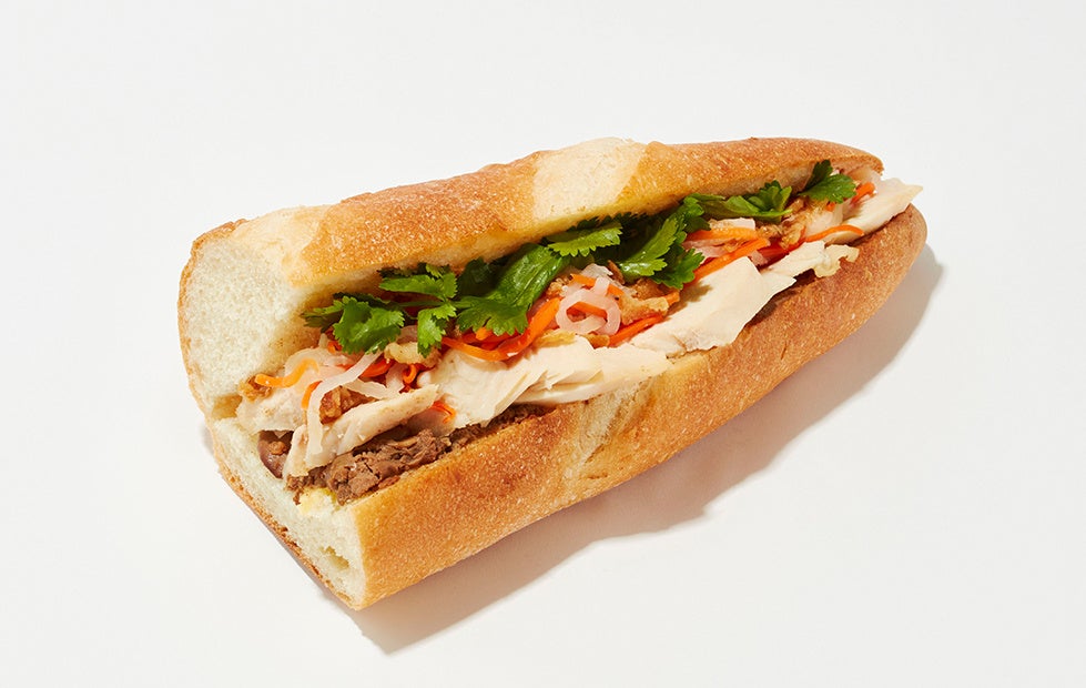 ソフトフランスに森林どりの蒸し鶏とレバー、なますを挟んだベトナムサンド。