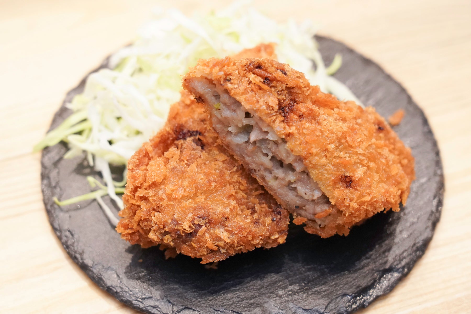 地元で長年愛される精肉店。ブランド豚「美明豚」を使用したお肉がぎっしり詰まったサクサクのメンチカツが絶品です。