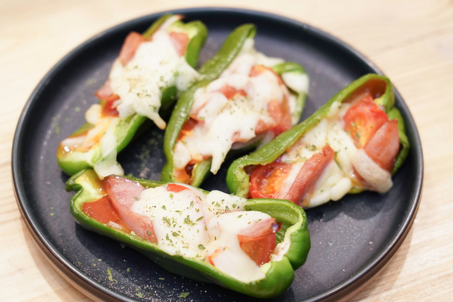 茨城の美味しい食材を、独特の食べ方で提供できたら話題になるのでは?という発想から生まれたのが、「Pザン」です。これはピーマンを器にして、その上にピザをのせたもの。オスペンギン山中の地元である神栖市が、ピーマンの生産量で日本一なので、神栖市産のものを使っています。ピザと比べてもヘルシーですし、ピーマンがシャキシャキで苦みもないので、かなり美味しくなっています