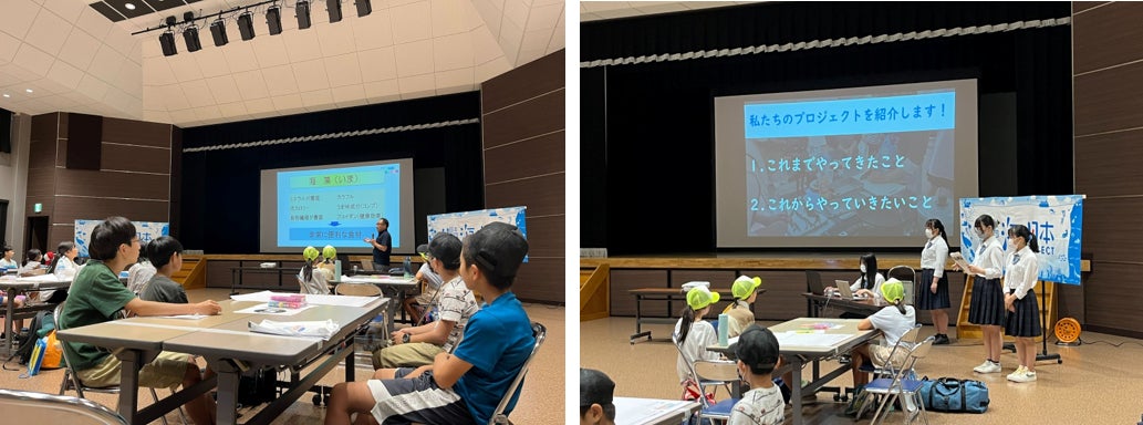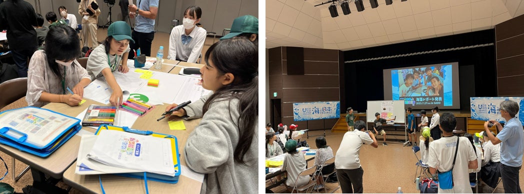 調査の締めくくり会場は両津港にほど近い佐渡島総合開発センターの大集会室です。2日間の学びを元に海藻の大事な役割や新しい食べ方のアイデアを各グループごとレポートにまとめ、発表します。はじめに佐渡地域振興局農林水産振興課副参事の唐木沢秀之(からきさわひでゆき)さんと一緒に学びをおさらいです。