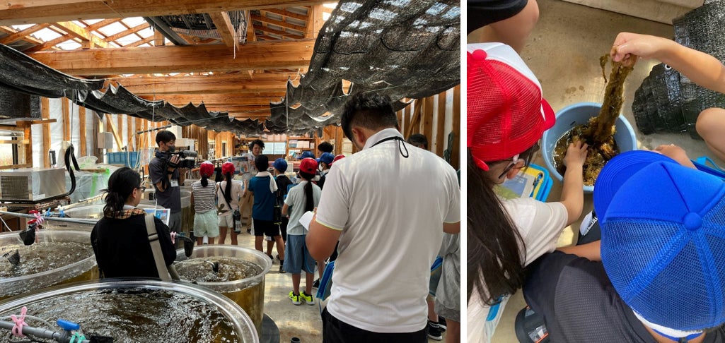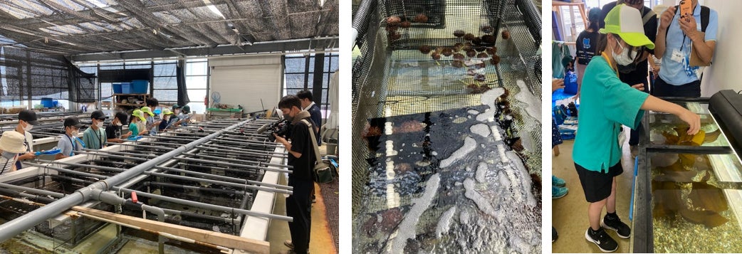 海洋深層水の蓄養施設でワカメ、コンブの生態を観察する