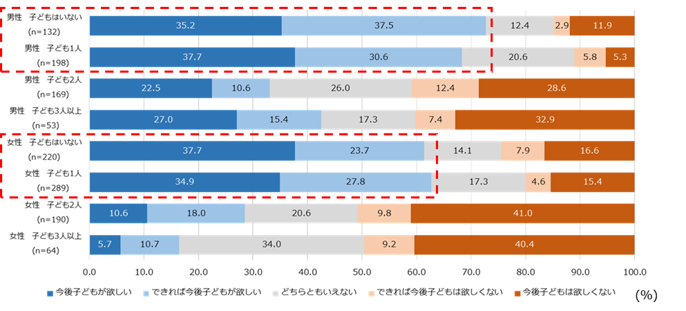 【図4】性別×子どもの人数別 今後子どもが欲しいか