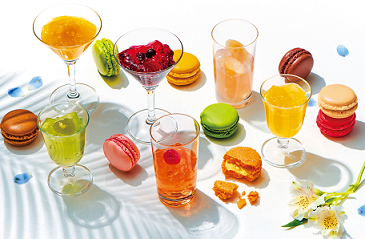 みずみずしいフルーツをたっぷりつめて、相性のよい洋酒を香らせたゼリーとあわせました。さわやかな余韻が残る、涼やかで香り高い風味です。