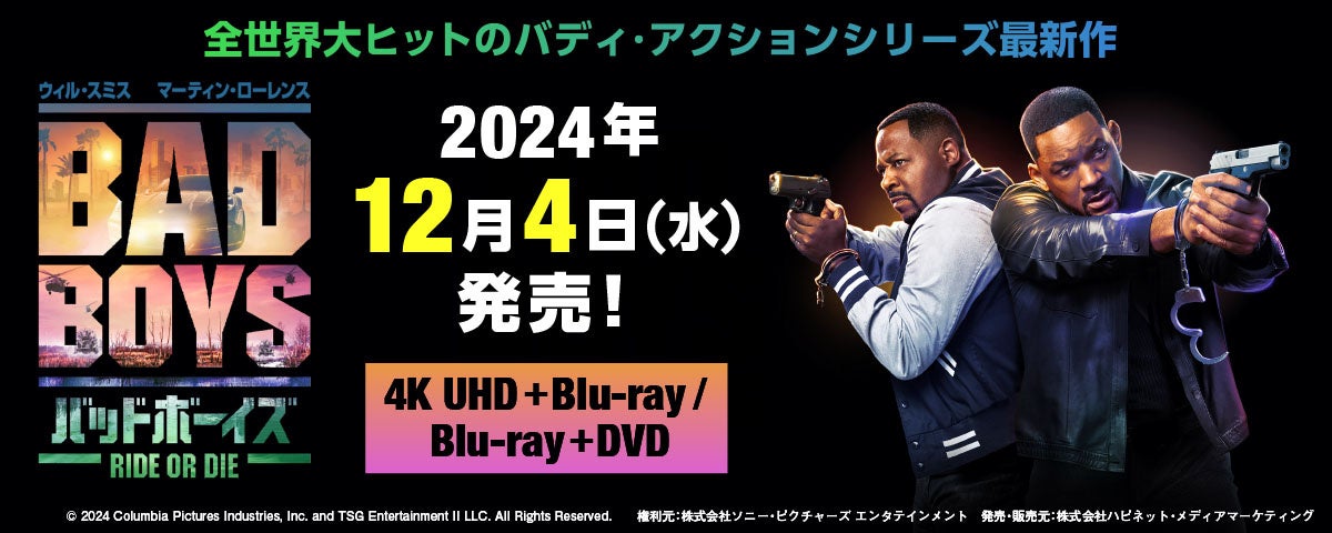 大ヒットバディ・アクションシリーズ最新作『バッドボーイズ RIDE OR DIE』の4K UHD+Blu-ray/Blu-ray+DVDセットを、2024年12月4日(水)に発売いたします。