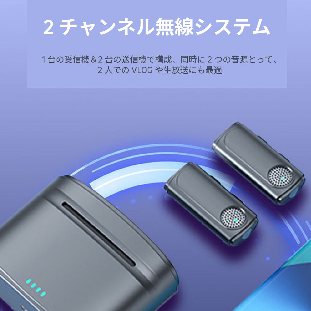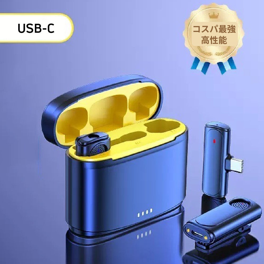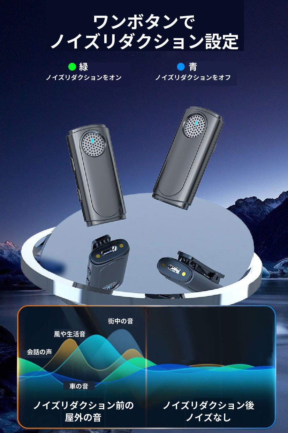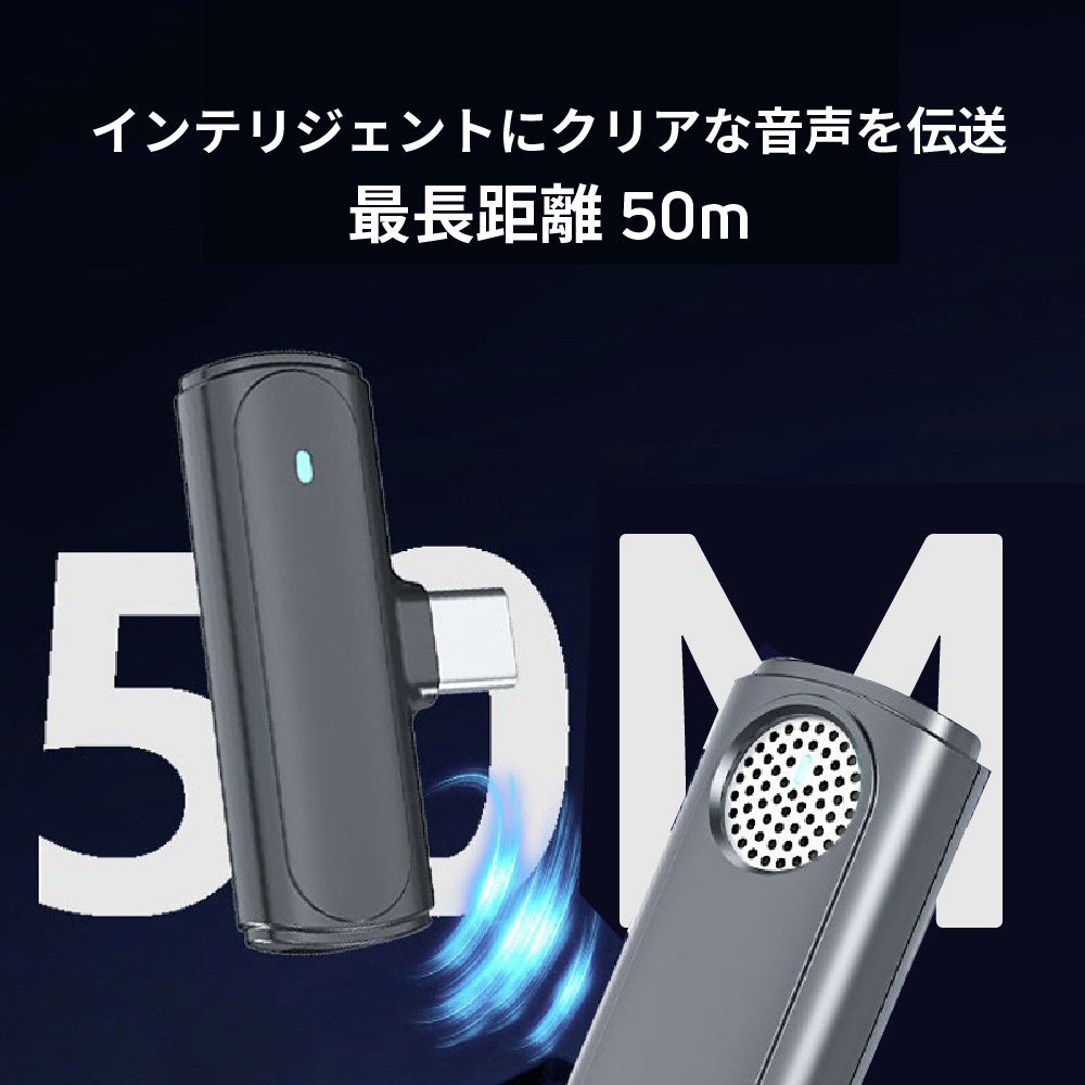 ピンマイク2個付/2.4GHzワイヤレス/ノイズリダクション/最大50m/iPhone・Android対応/USB-C充電