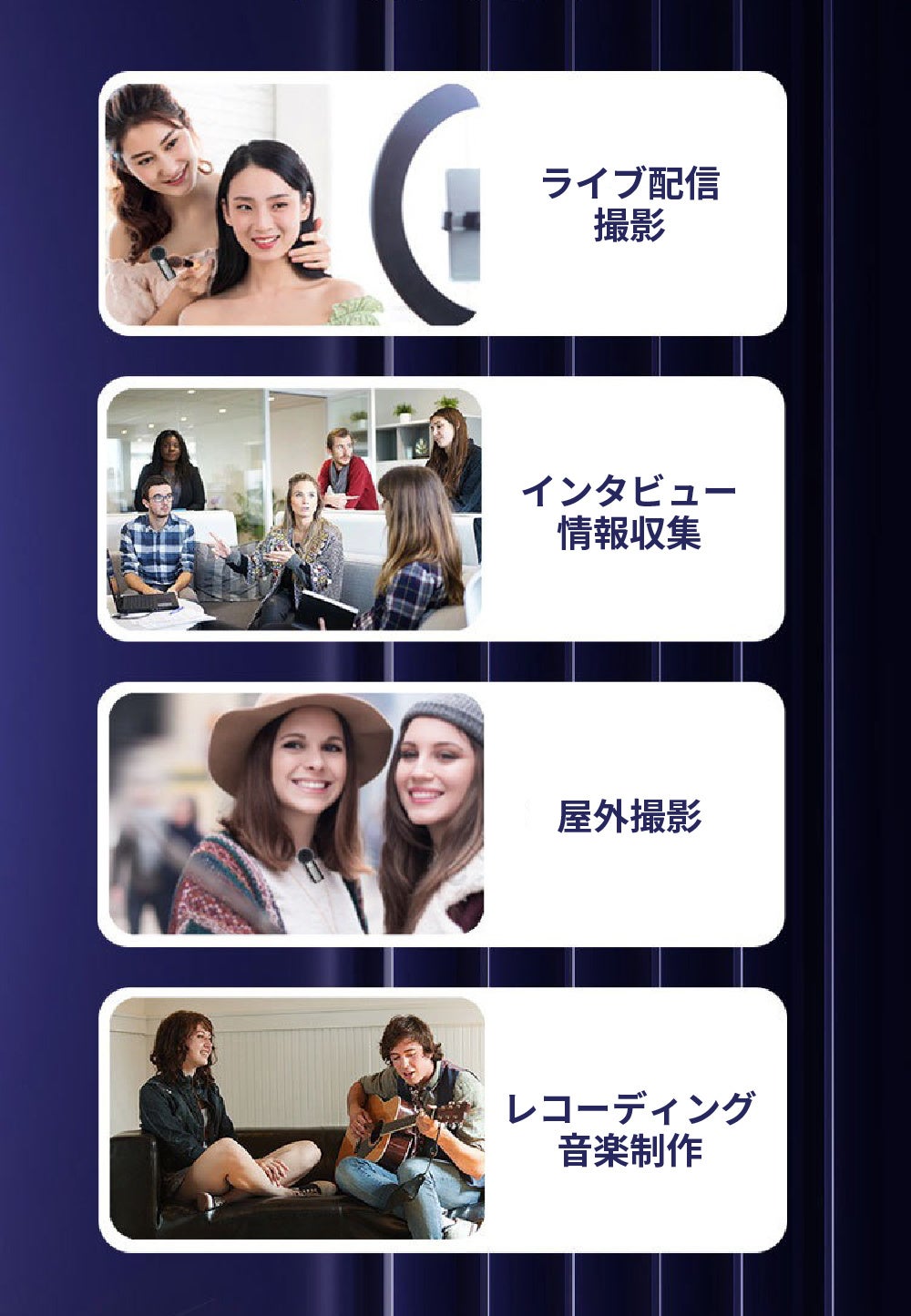 屋外や多様なシーンの音収録やライブ配信、ボーカルマイクなど多様なシーンで利用可能