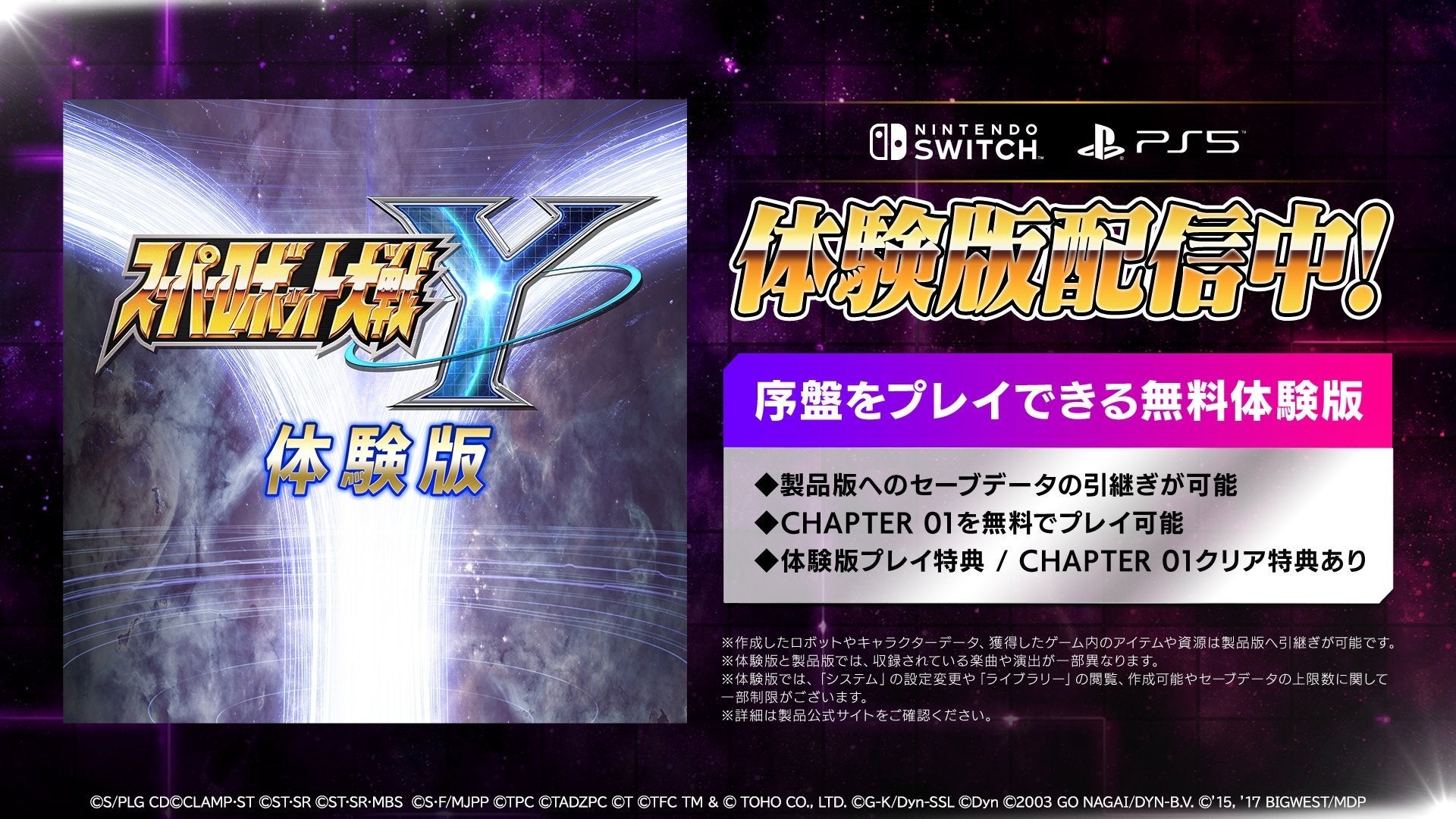 Nintendo Switch™/PlayStation®5において『スーパーロボット大戦Y』のCHAPTER01をプレイできる無料体験版を配信中です。