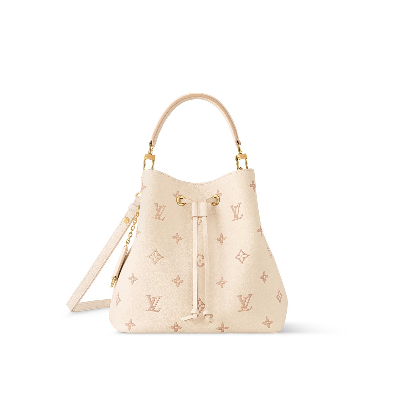 「ネオノエ MM」は、万能なカラーパレットで仕上げ、お好みで着脱できるゴールドカラーのチェーンのチャームでアクセントを添えました。整理しやすい内装には、複数のコンパートメントと小物を収納できる取外し可能なポーチを備えています。