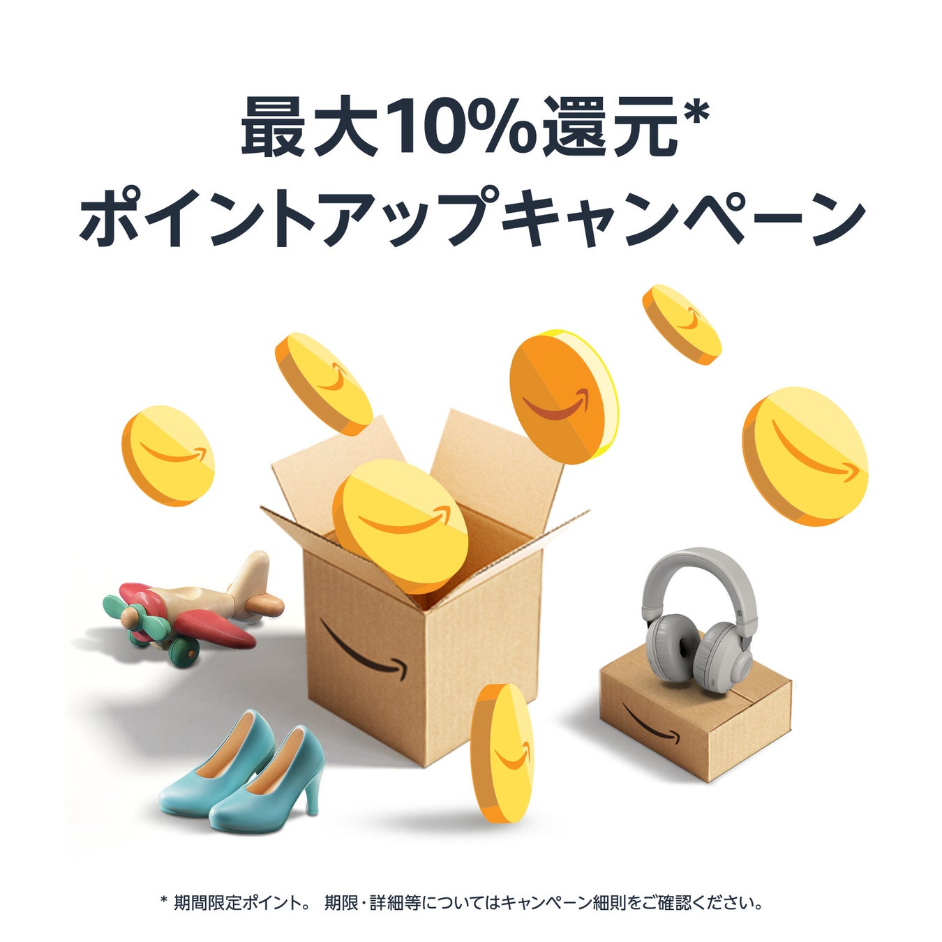 エントリー期間中にキャンペーンにエントリーの上、お買い物対象期間中に合計10,000円(税込)以上ご注文いただくと、Amazonポイント(期間限定ポイント)を最大10%(最大5,000ポイント)還元します。