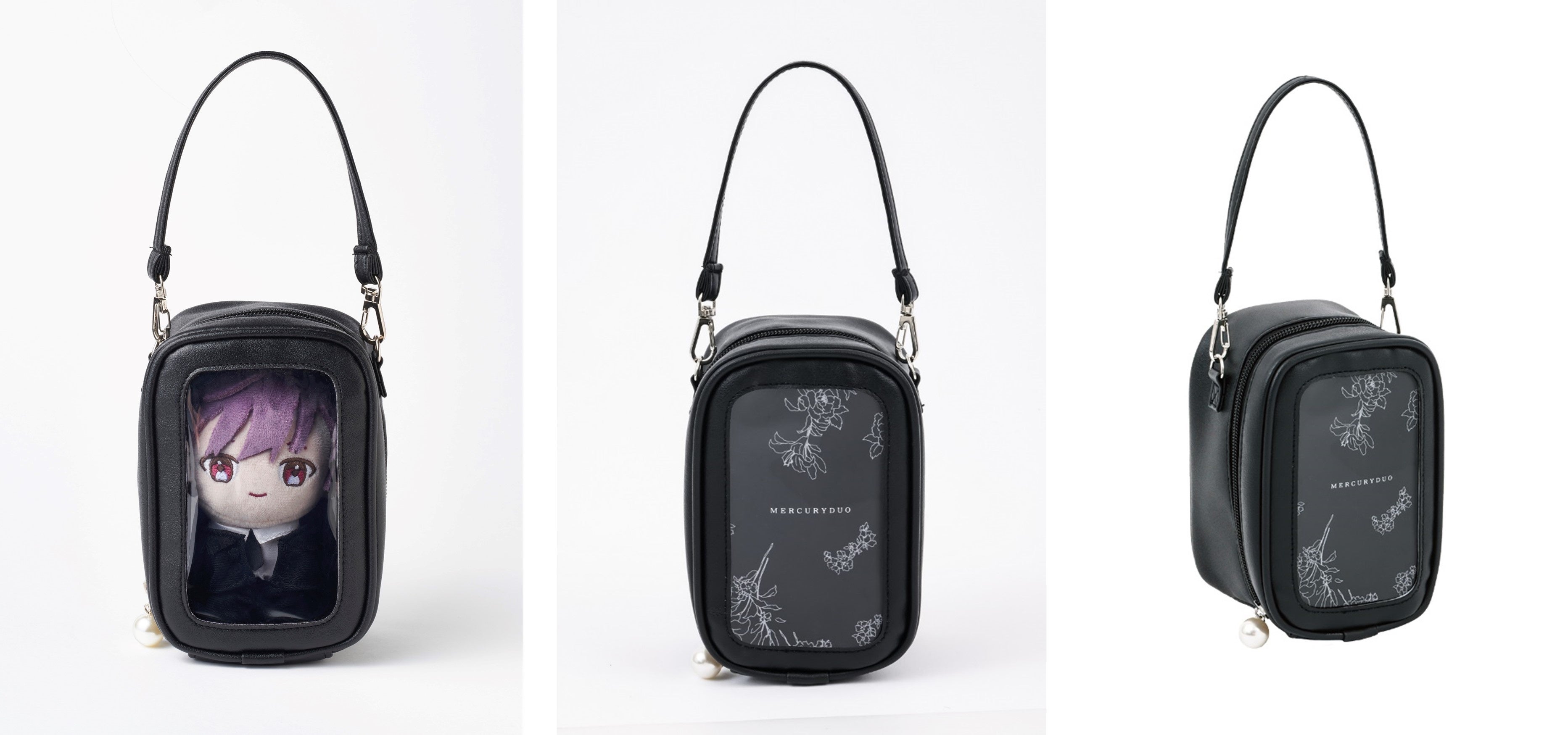 「ポーチ」は、推しのぬいぐるみがぴったり入るサイズ。クリアな窓から推しが見えて可愛いので、バッグのハンドルに引っ掛けて持ち歩くのがおすすめ。デコレーションしたクリアシートを前面に入れたり、学校や職場では目隠しシートを入れてカバーすることもできます。