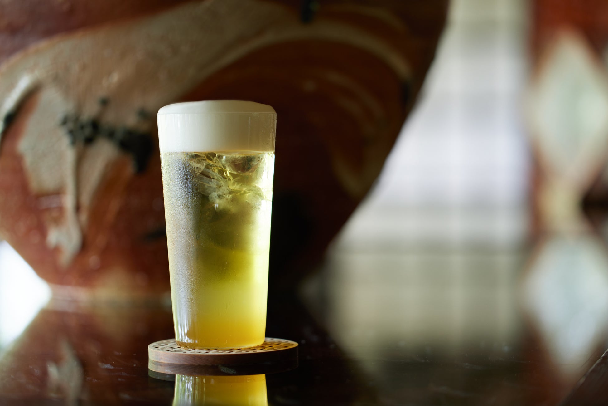 ビールとレモンサワー、二つの要素を兼ね備えたハイブリッドな一品。麦焼酎にスパイスを抽出し、「宮れもんレモンコーディアル」と濃縮ビール、アクセントに台湾のスパイス 「マーガオ(山胡椒」」を添えたことで、レモンサワーと揚げ物という定番の組み合わせをより深めた一杯。