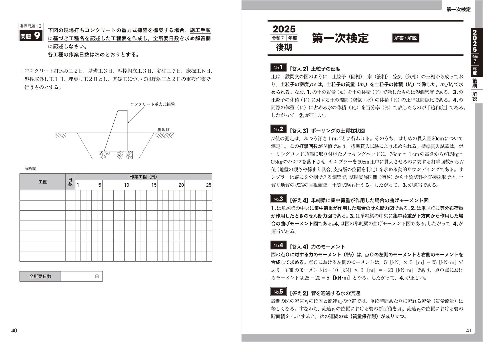 受験者必携の2級土木施工管理技士の過去問題集。