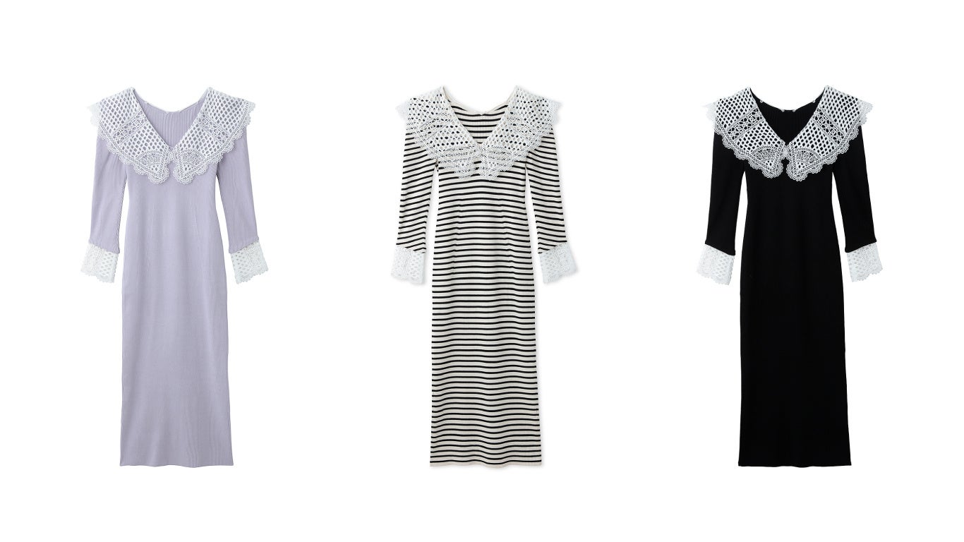 コラボレーションアイテム第6弾は、レース使いが視線を集めるニットワンピース。
